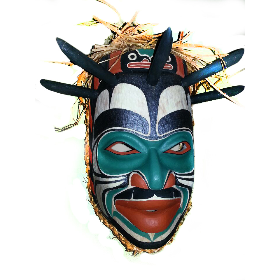 Shaman with Eagle on forhead. A mask by artist Ryan Morin
